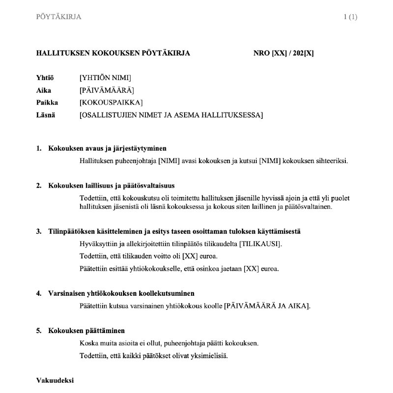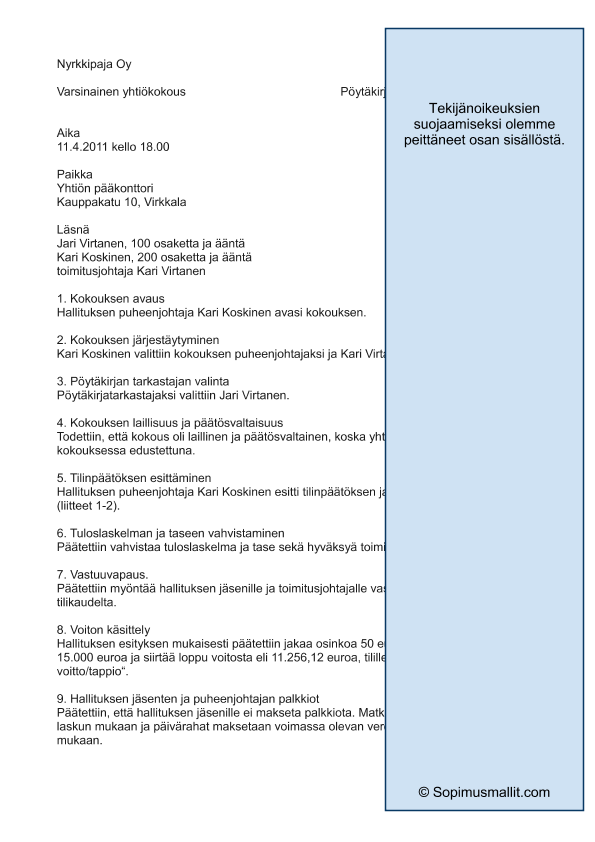 Osakeyhtiön yhtiökokous pöytäkirja pohja englanniksi ilmaiseksi pdf-muodossa