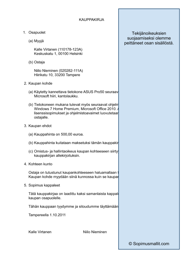 Lataa ilmainen kauppasopimuspohja ja hyödynnä sitä liiketoiminnassasi. Sopii erinomaisesti kaupallisten sopimusten laatimiseen ja organisointiin. Helppo muokata ja käyttää tarpeidesi mukaan.
