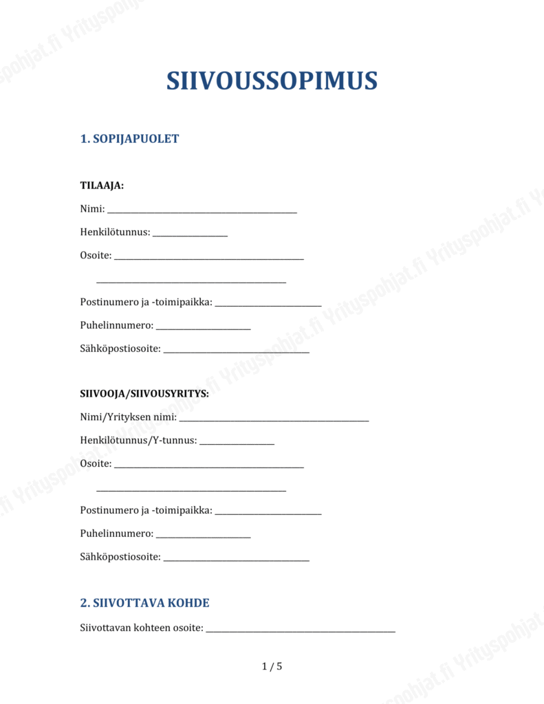 Lataa ilmaiseksi SIIVOUS JA KOTIPALVELU SOPIMUS POHJA PDF. Selvitä kotihoidon palveluiden oikeutetut ja helpota arkeasi! Sopii sinulle, joka tarvitset tehostettua kotipalvelua.