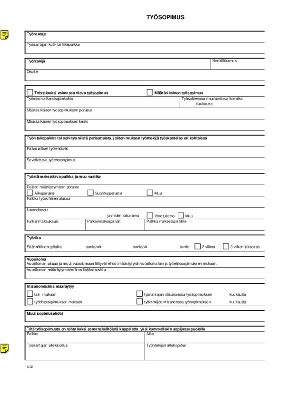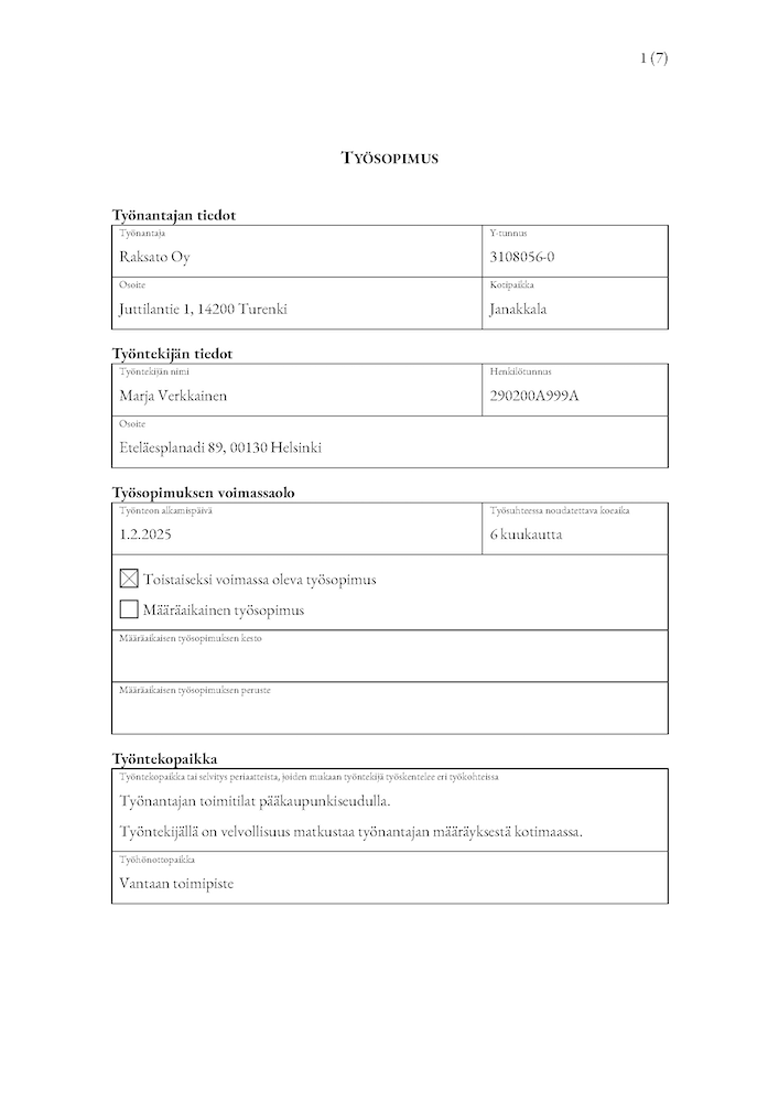 Lataa ilmainen työsopimuspohja, päivitetty vastaamaan nykyisiä työlainsäädäntöjä. Täydellinen apu työsopimuksen laatimiseen nopeasti ja helposti.